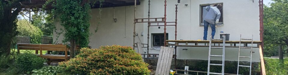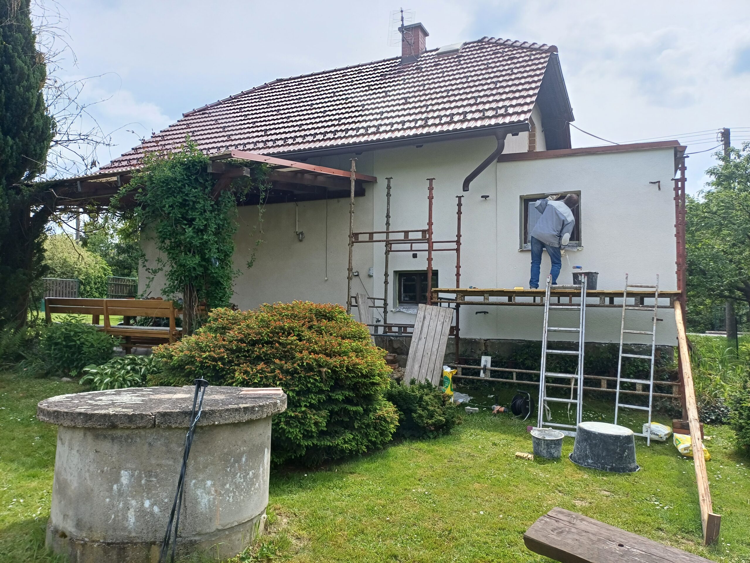 V letech 2024 a 2025 jsme chalupu jemně obnovili – osvěžili jsme fasádu, vyměnili okénko na WC a moderní vstupní dveře, které se nyní pohodlně zamykají.